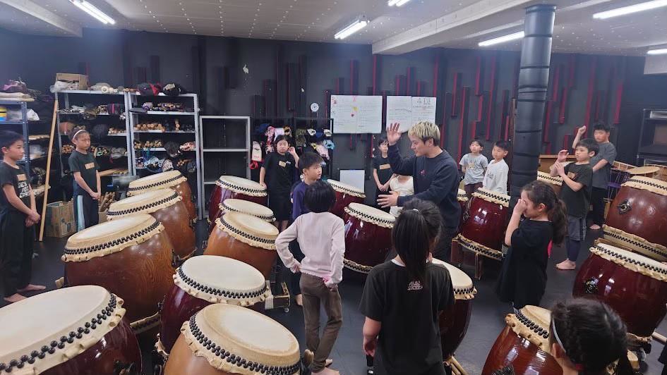 転輪太鼓の講師が訪問しての和太鼓の教室、全世界どこへでも駆けつけます